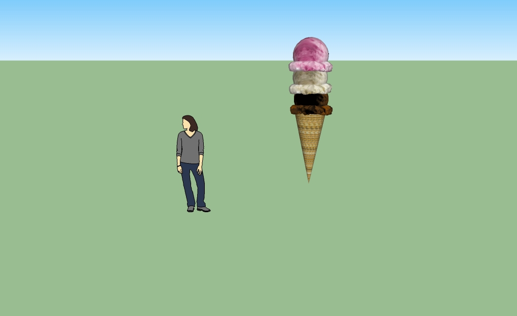Sphere inside a Cone (ice cream cone)- First create a sphere and a cone (see the how to page). Rotate the cone upside down by selecting the rotate tool. Then selecet the orbit tool and move until you can see the what used to be the bottom of the cone. Select the sphere. Click the move tool and place the sphere inside the cone creating an ice cream cone.
