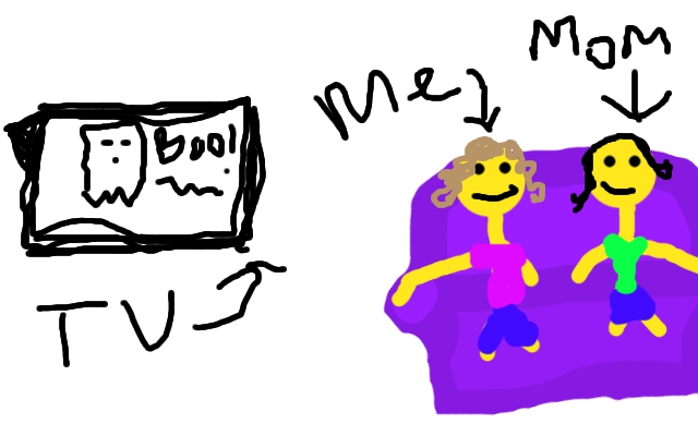 On the third day, I stayed at home with my momma. We watched a big scary movie marathon and watched a really lame one where the ghost was actually in a sheet and said "boo" all the time.