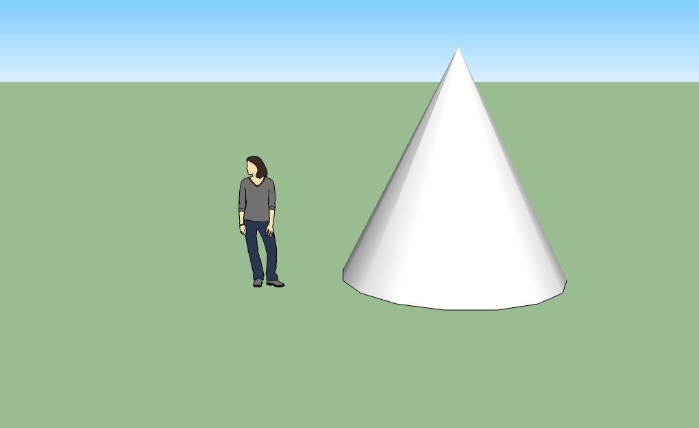 Cone- I made a second cone, but tried a different way to go about making it. Make a circle on the ground plane. Select the line drawing tool and make a line going from the center of the circle up to the desired height. Then make a radius on the circle. Lastly, connect the two lines; it should've created a right triangle. Once the triagle is completed, select the "follow me" tool and pull the traingle around the circle until it is all the way around and connected.